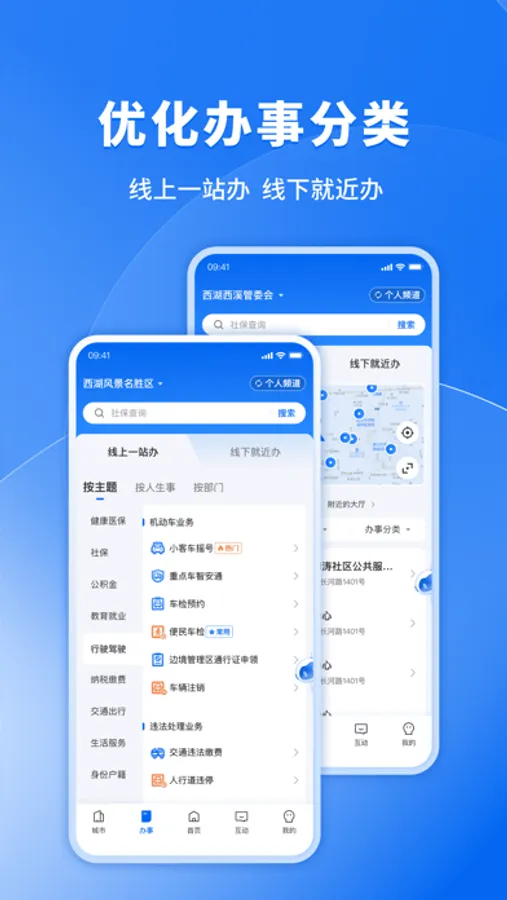 升级线上一站办,对全省全量政务服务事项和便民惠企服务进行系统性分类,分类更简、维度更广、路径更优;新增线下就近办,通过“距离”“忙闲”“办事分类”为用户筛选最佳办事网点。