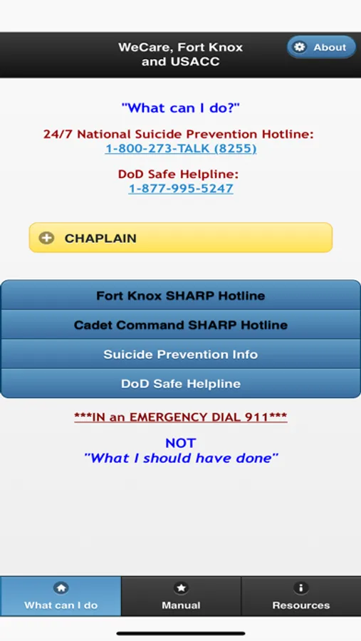 This app is to support the TRADOC Sexual Harassment/Assault Response and Prevention (SHARP) campaign plan which is designed to reduce with the goal of eliminating sexual harassment and sexual assault from our ranks. This is one of many initiatives developed to ensure that every member of our TRADOC family serves in a safe environment, free from sexual harassment and sexual assault.