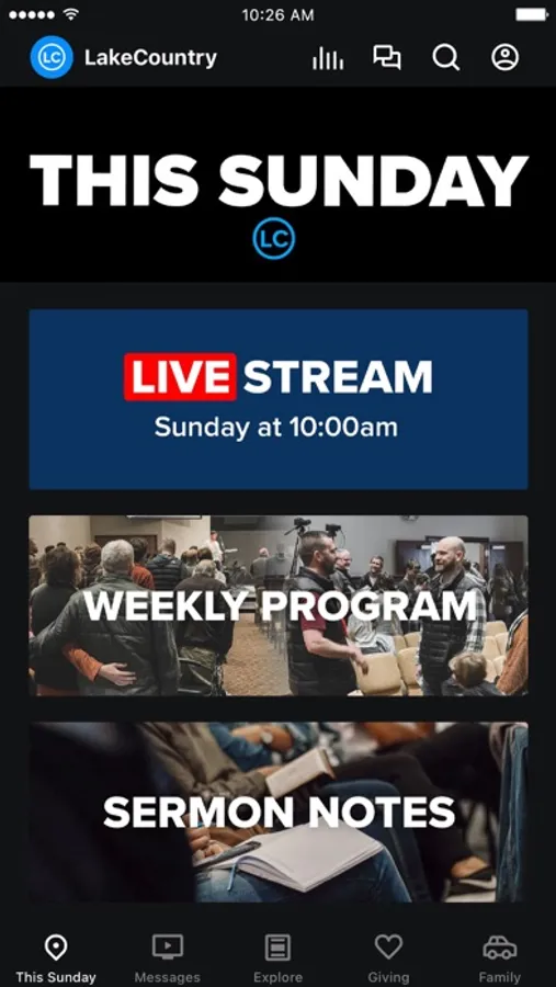 The Lake Country Baptist Church app was developed with the Subsplash App Platform.