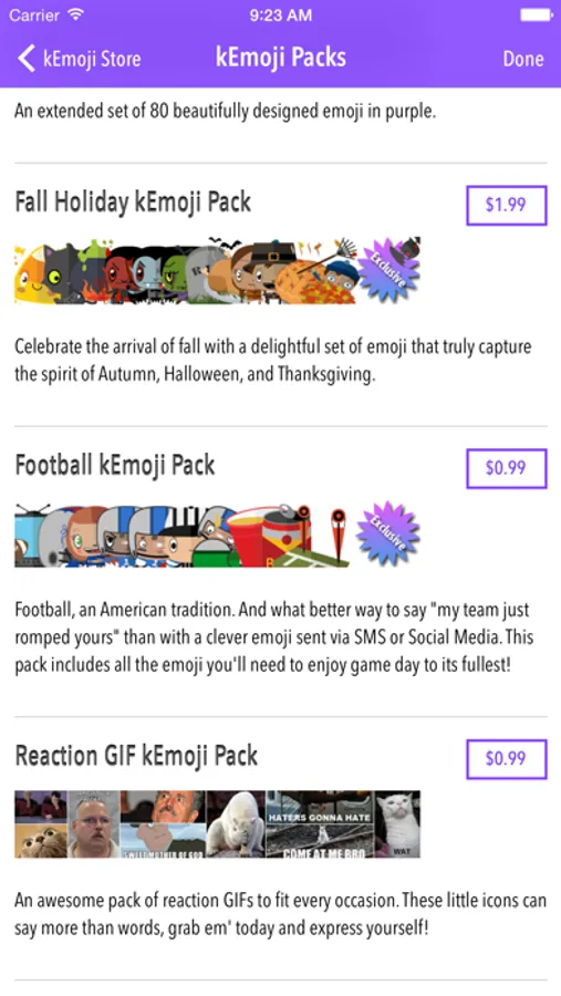 *kEmoji* You’ll find a bunch of totally new kEmojis in the app to share easily with friends, all for FREE! Send them in any app, right from the kEmoji keyboard! If you want to impress them even more, take a look at our other packs with exclusive new Emoji icons AND Reaction GIFs available only with our app.