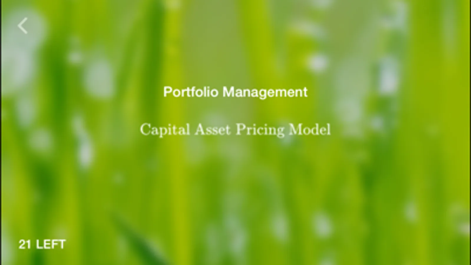 Flash Exam Cards for CFA® was developed to help CFA® candidates memorize financial formulas for the exam. It's a simple and quick way to go through your CFA® exam formulas, no matter where you are or how much time you have. The idea was to create an app that is pre-loaded with the exam formulas and pleasant to use, including intuitive gestures to navigate and color combinations that reduce eye strain and keep your attention. Although not meant to be a comprehensive study program, we hope the app helps you learn the formulas and ultimately pass your exam.