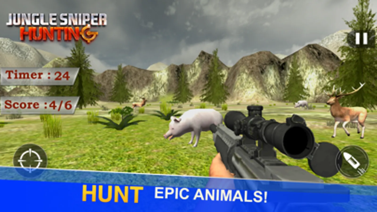 You love to hunt, and are entered in this dangerous jungle with your best sniper shooting gun. dangerous animals are out there, choose among deer, stag, bear, boar, pig, take the aim and shoot. You have 8 levels to play with each animal. never ending fun is here.