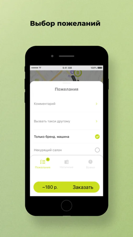 Добавьте к заказу дополнительные пожелания. Например, если вы не переносите запах табака — укажите "Некурящий салон", и к вам приедет некурящий водитель.