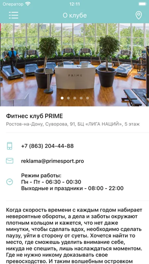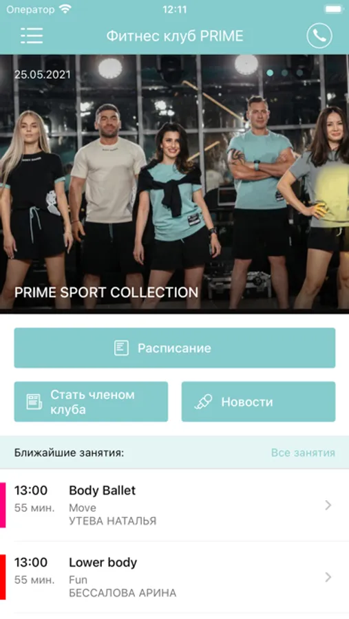 Приложение предназначено для клиентов клуба Prime