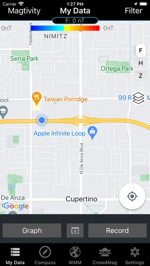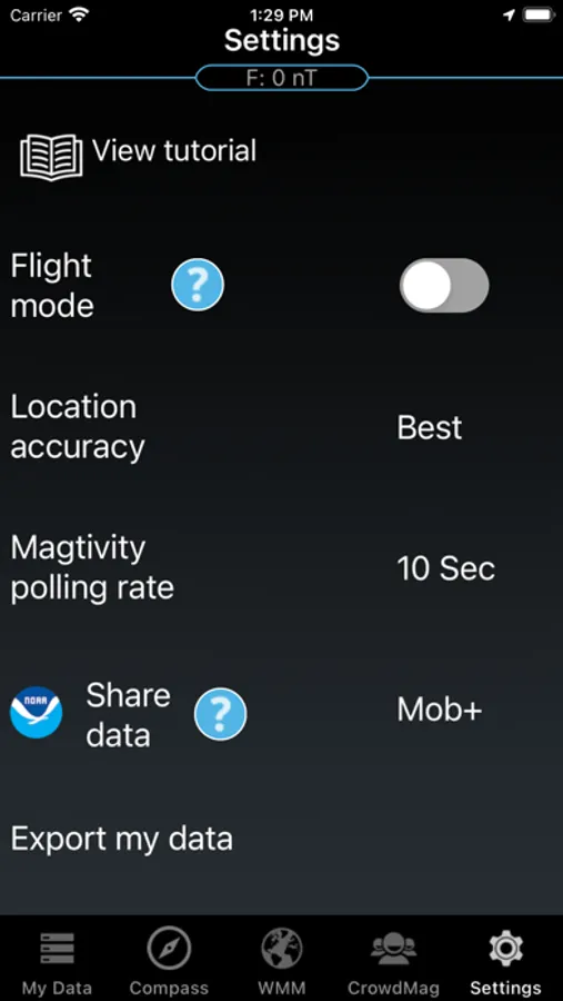 CrowdMag is an app that lets you measure the local magnetic field using your smartphone. You can view the data as a graph or a map in nanotesla units. CrowdMag measures the Z (downward component), H (horizontal intensity), and F (total intensity) magnetic field components. You can use CrowdMag for measuring magnetic data during outdoor activities, while flying, or to conduct your own experiments. You can also share it with NOAA to help scientists better understand Earth's magnetic field.