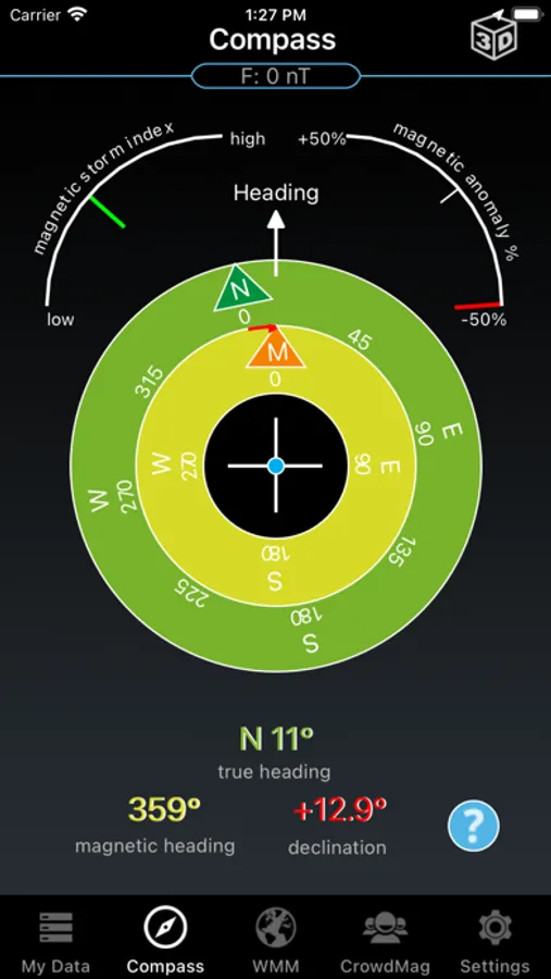 And, before we forget, CrowdMag also features a compass that distinctly shows both true and magnetic north. As an added feature, the compass also has a 3D display with an optional audio output - check it out!