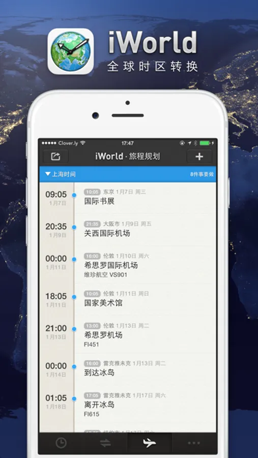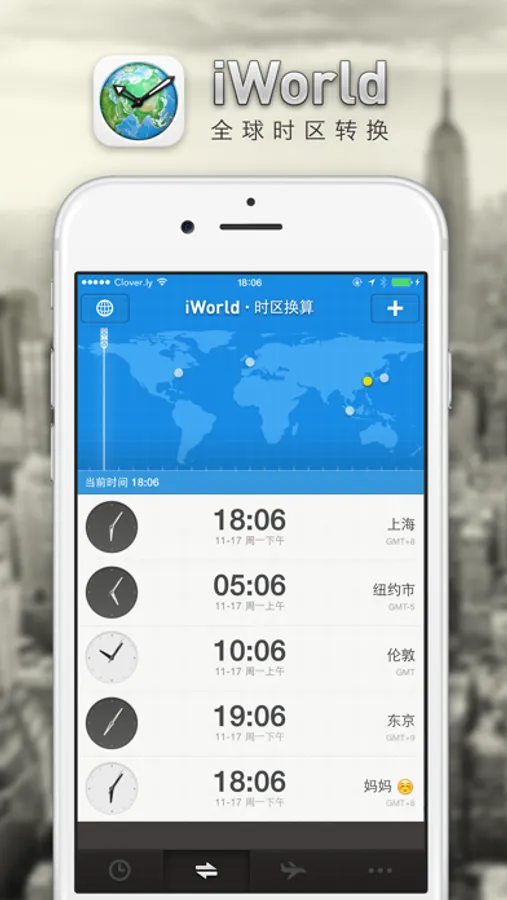 「iWorld · 全球时区转换」是一款简单强大的时区转换 App,提供关于地球时区的所有应用需求:600 个城市时间覆盖,全球时区查询,亲友城市时间,出国旅程计划,跨国会议安排,为你的环球工作及生活提供全面帮助。