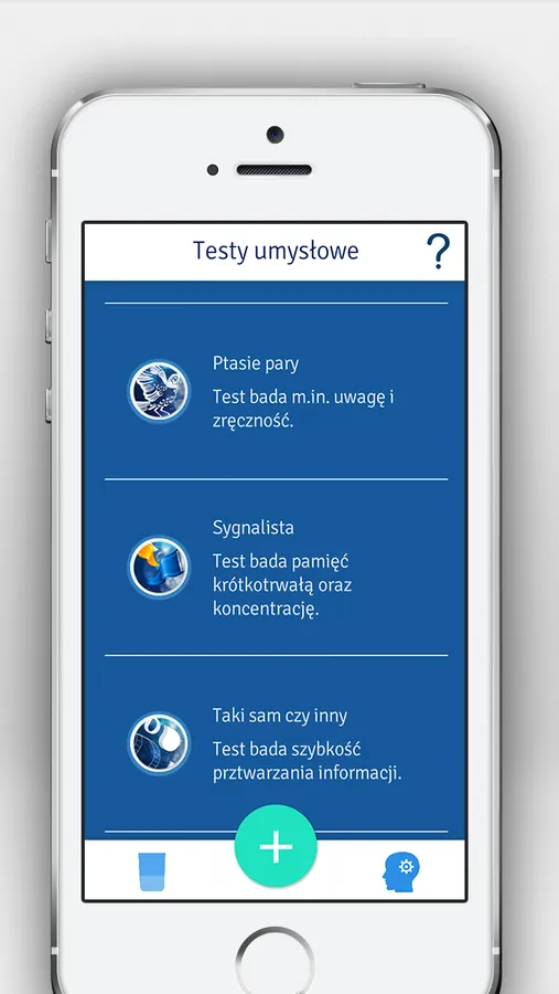 Nawodnienie wpływa nie tylko na wydolność fizyczną, ale też sprawność umysłową, dlatego aplikacja zawiera dodatkowo testy, dzięki którym sprawdzisz pamięć krótkotrwałą, koncentrację i szybkość reakcji
