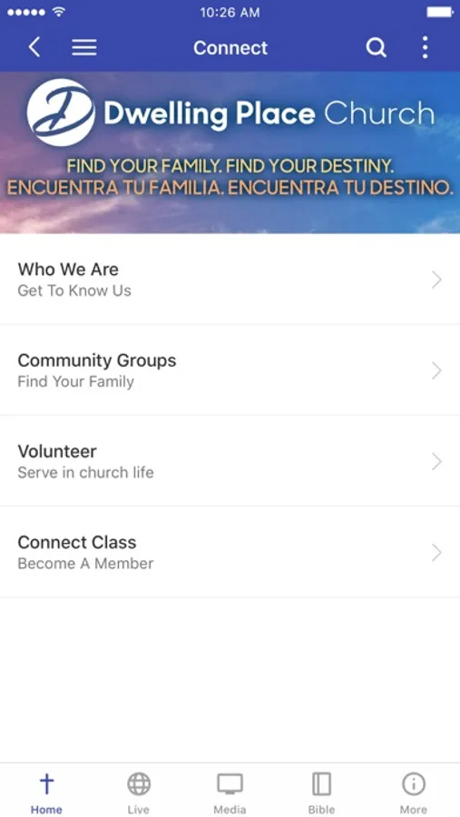 The Houston Worship Centre app was developed with the Subsplash App Platforms