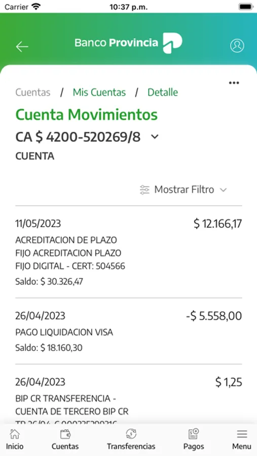IMPORTANTE: La utilización del servicio implica la aceptación de los términos y condiciones publicados en www.bancoprovincia.com.ar