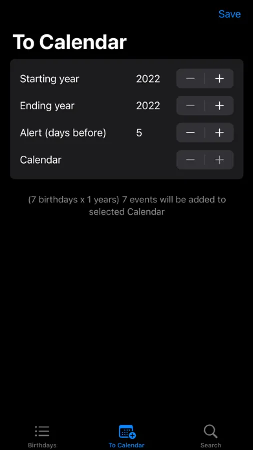 This app makes it easy to create and view all important birthdays/events in one place. Name them how you want. Search your calendars for existing events. It's elegant and powerful. Download today and try for yourself.