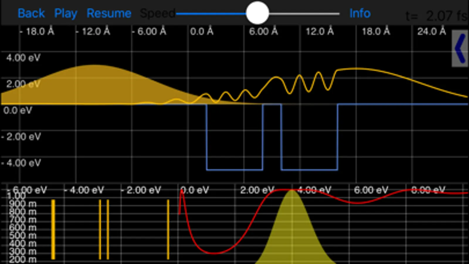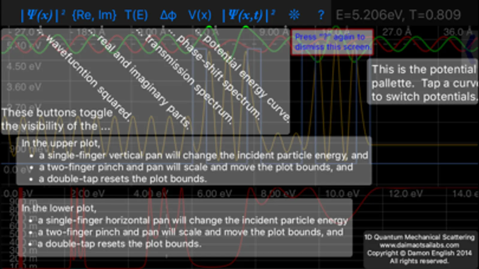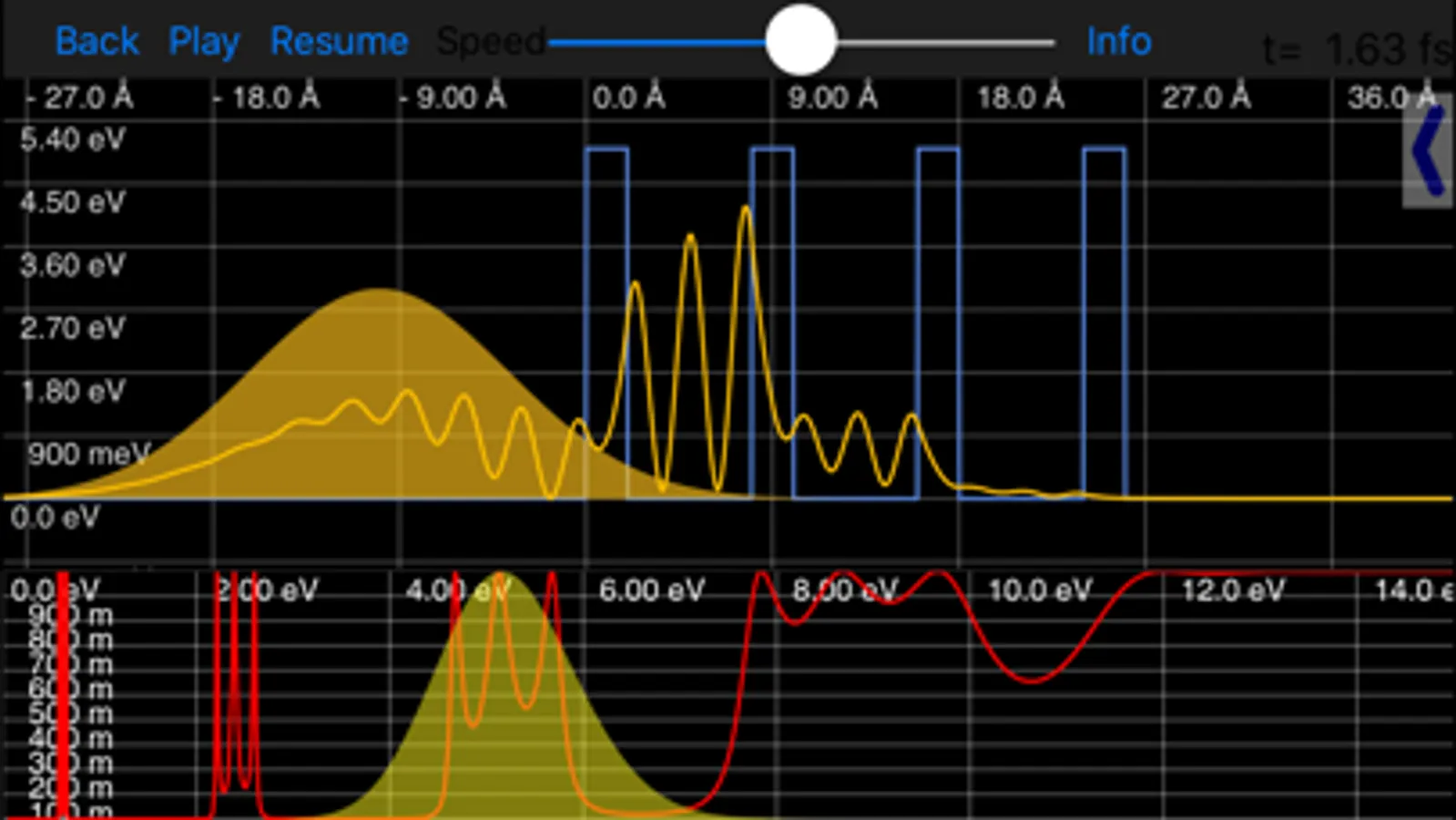 Interactive plots illustrating material typically covered in university introductory quantum mechanics classes. With this app you manipulate the energy of an electron in a series of one-dimensional potentials, observing bound and scattering states, as well as the time-development of Gaussian pulses.