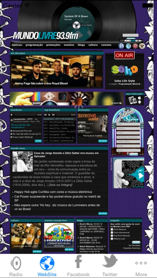 Na Rádio Mundo Livre FM a programação musical é feita pensando em pessoas que tem opinião, gosto apurado e, acima de tudo, sensibilidade para saber que em um mundo livre o ouvinte quer escutar aquilo que gosta. Na Mundo Livre toca os grandes nomes da música nacional e internacional, desde o eletrônico até os clássicos do rock’n roll e ainda te deixa informado sobre tudo que acontece no Brasil e no mundo. Na mundo livre você também encontra informações sobre eventos culturais e musicais que acontecem na cidade, além de promoções exclusivas.
