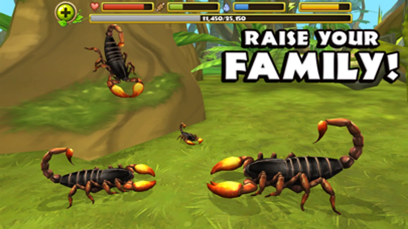 + START A FAMILY - Find a mate to bond with and raise your very own brood of scorpions to help you hunt! Watch your baby scorplings grow in size and assist you in combat!