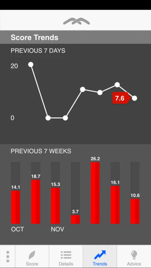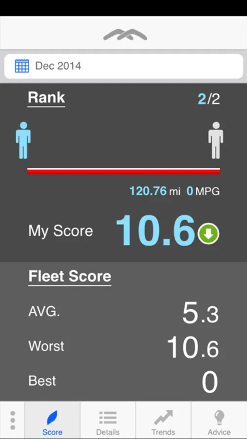 - MyScore Home Screen with personal score, fleet score, graphical fleet ranking, personal score trend