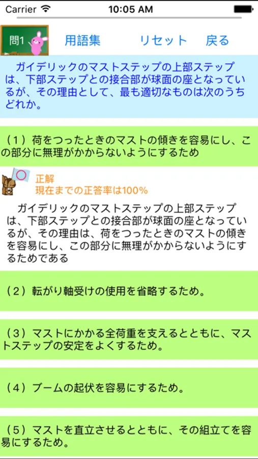一問一答形式からなり、回答後、正答率も確認できます。