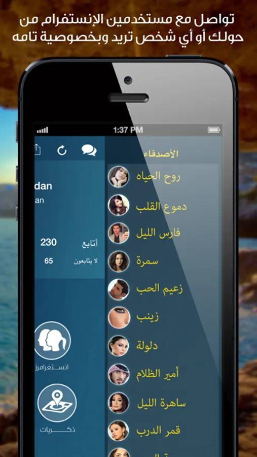 نظام البحث من حولك أو أي بقعه في العالم، لتشكيل صداقات لا مثيل لها.