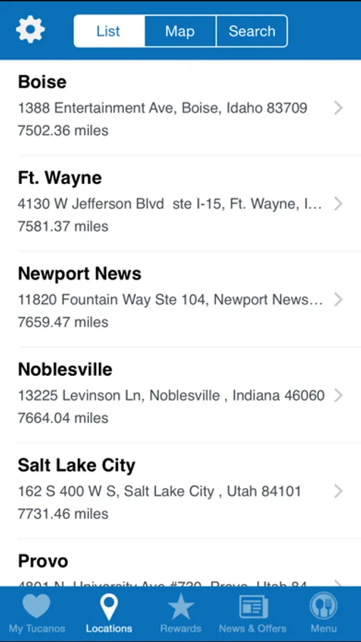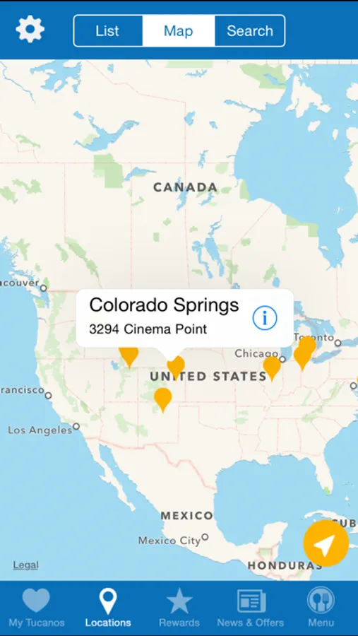 -Map view- Uses your phones GPS to find the closest Tucanos restaurant location.
