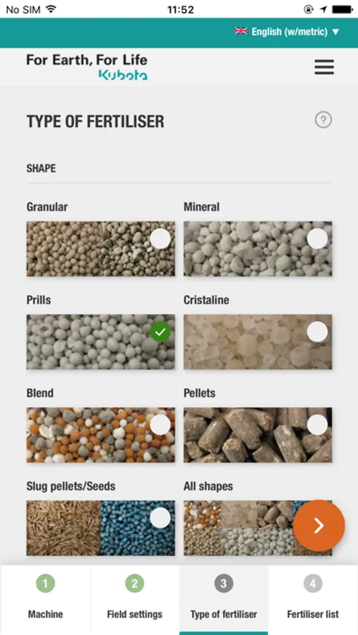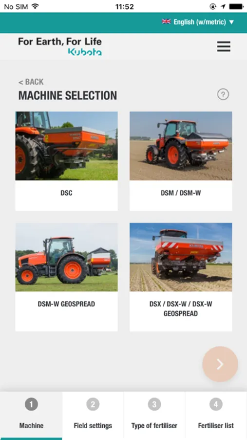 In just some steps, the App guide you to the correct advice for your Kubota fertiliser spreader, anytime, anyplace, anywhere for almost all commonly used fertiliser types.