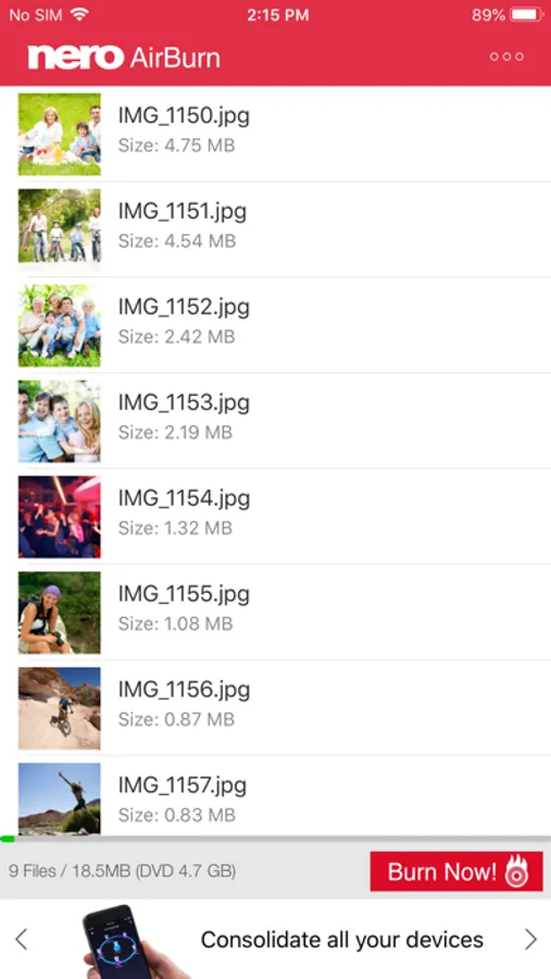 Nero AirBurn App makes copying and archiving the precious files from your iPhone®, iPad® or iPod touch® a breeze. The app works in combination with Nero Burning ROM (2015 and higher versions).