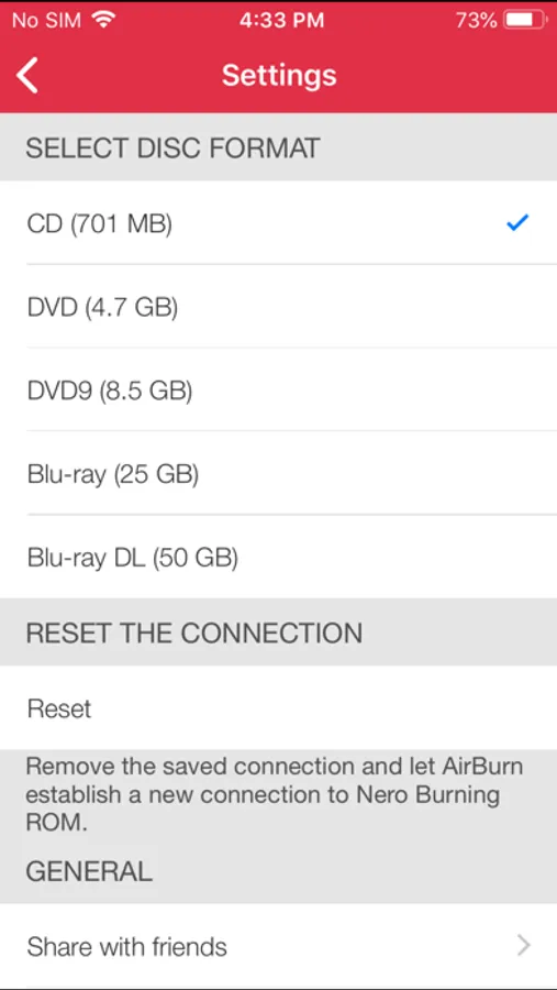 - When you use rewritable discs Nero AirBurn allows re-formatting your disc with just one click within the app
