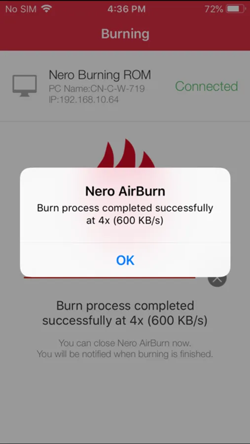 - Nero AirBurn will show a message on your device when disc burning is finished