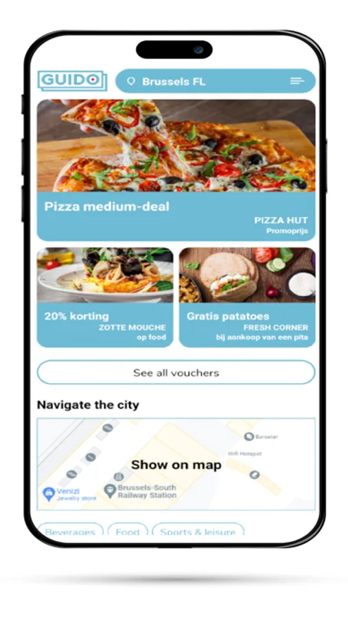 The Guido City Guide for students offers city info and benefits for more than 20 Belgian student cities. Find the best addresses on your smartphone, get free products and enjoy great discounts on food, drinks, sports, culture and much more. Users of the app enjoy exclusive in-app benefits with digital discount vouchers.