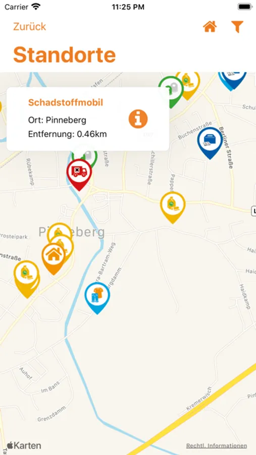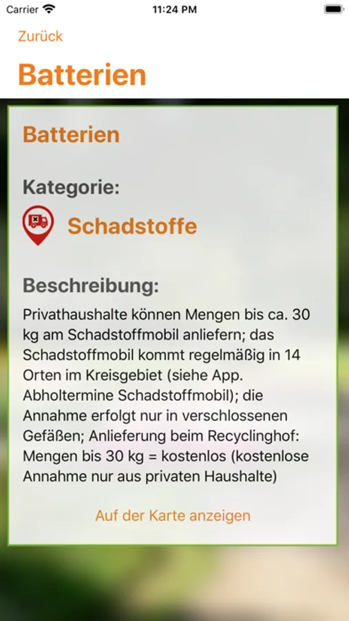 • eine Übersicht aller Entsorgungsstandorte mit Öffnungszeiten und einer Routingfunktion