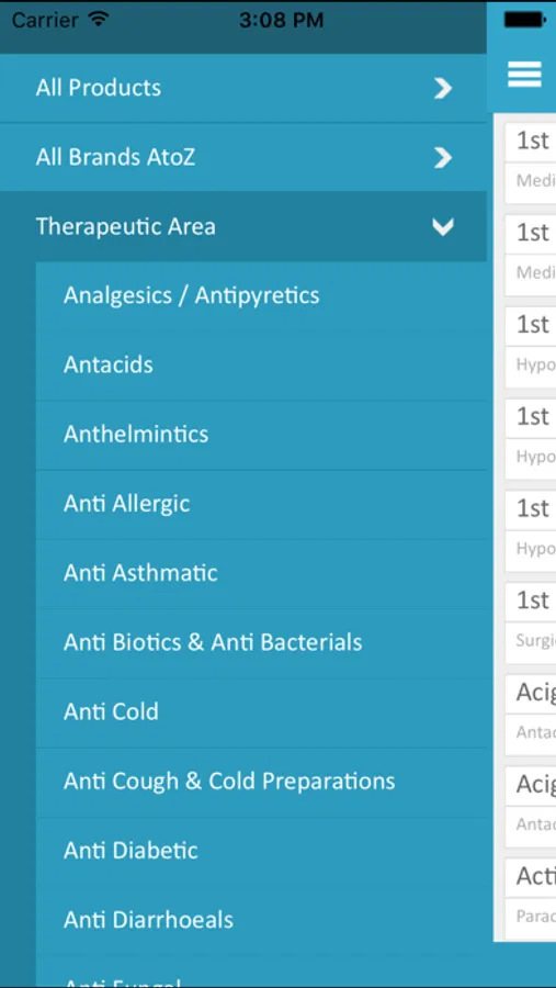 2. You can search various products by typing the Brand name, generic name, therapeutic category.