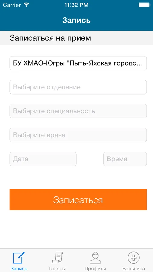 Приложение позволяет пациенту записаться на прием к врачу в медицинское учреждение в городах ХМАО при наличии прикрепления к учреждению.
