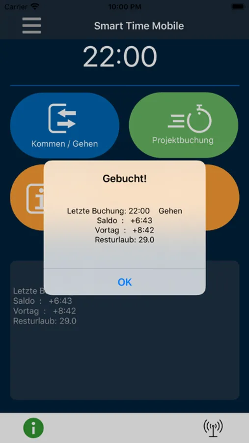 Bei fehlender oder gestörter Internetverbindung werden aktuell getätigte Buchungen zwischengespeichert und zum nächstmöglichen Zeitpunkt automatisch an den Firmenserver gesendet.