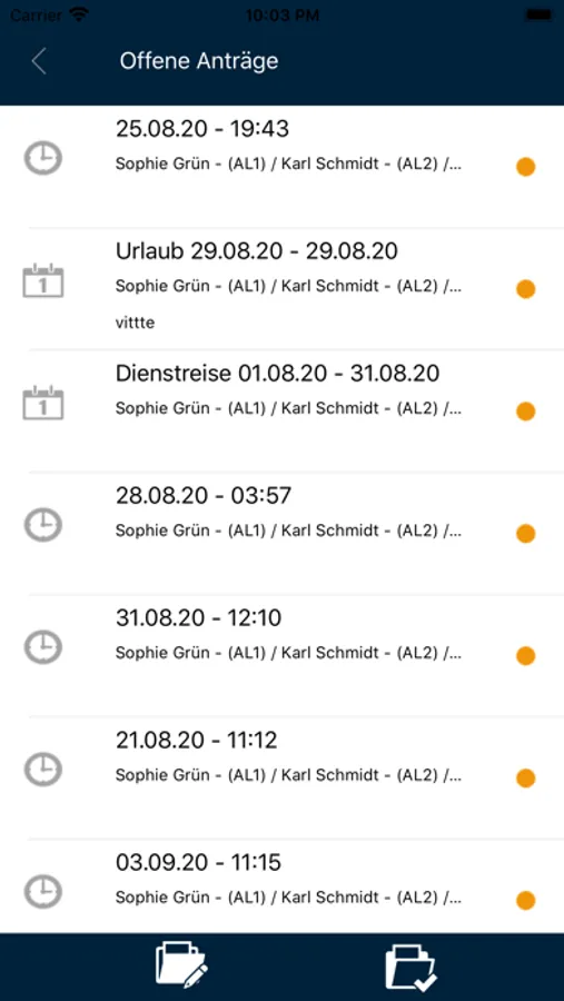 •Stellen von Anträgen vergessener Buchungen oder Abwesenheiten wie Urlaub und Dienstreise
