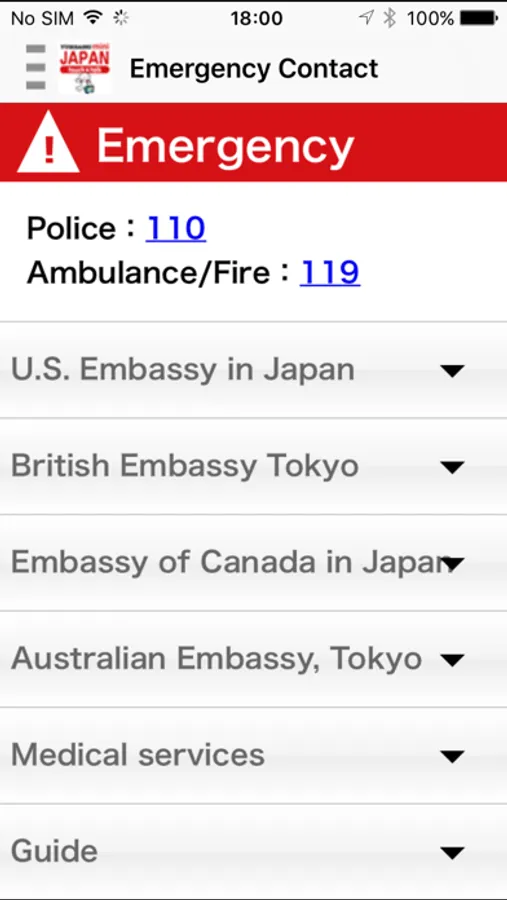 Emergency contact such as Embassies in Japan, police stations and hospitals.