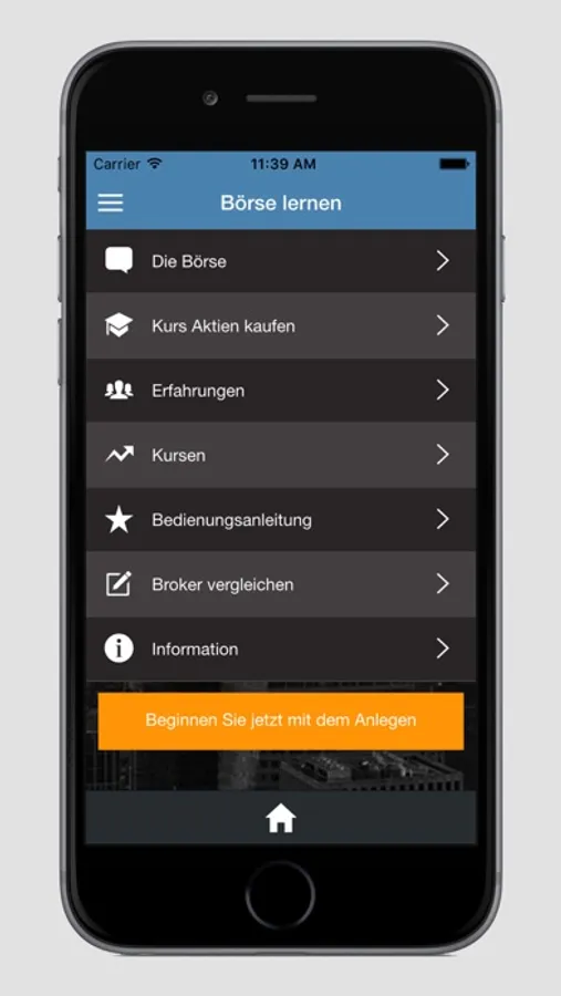 Im Folgenden finden Sie eine kurze Übersicht über die wichtigsten Elemente der App „Börse lernen“: