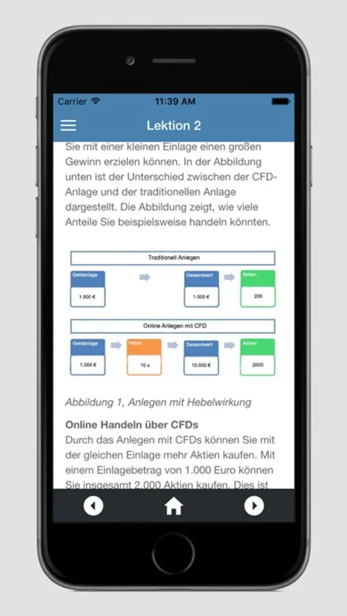 Darüber hinaus finden Sie in dieser App Praxisbeispiele darüber, wie durch den Kauf von Aktien über CFD Gewinne an der Börse erzielt wurden. Es werden auch Tipps gegeben, mit denen Sie während Ihrer Aktivitäten an der Börse Ihr Risiko einschränken können.