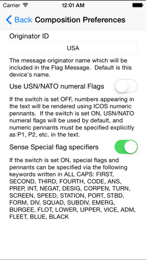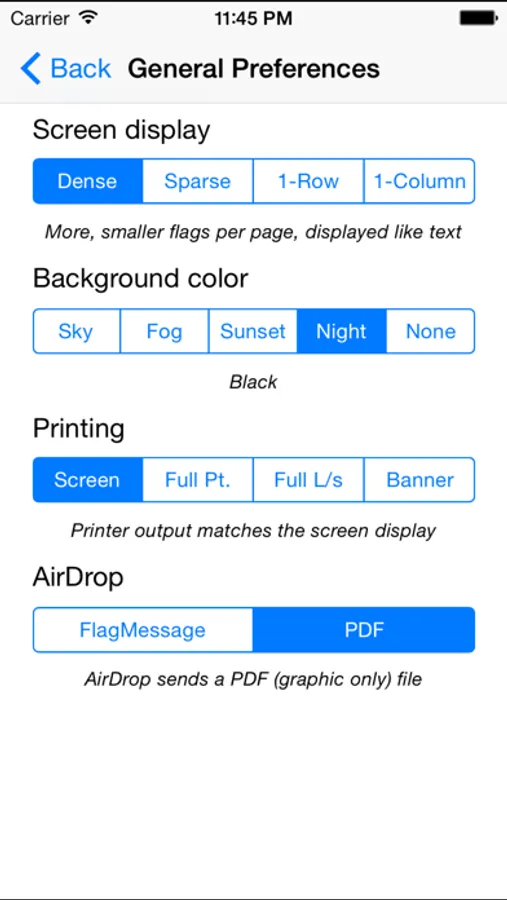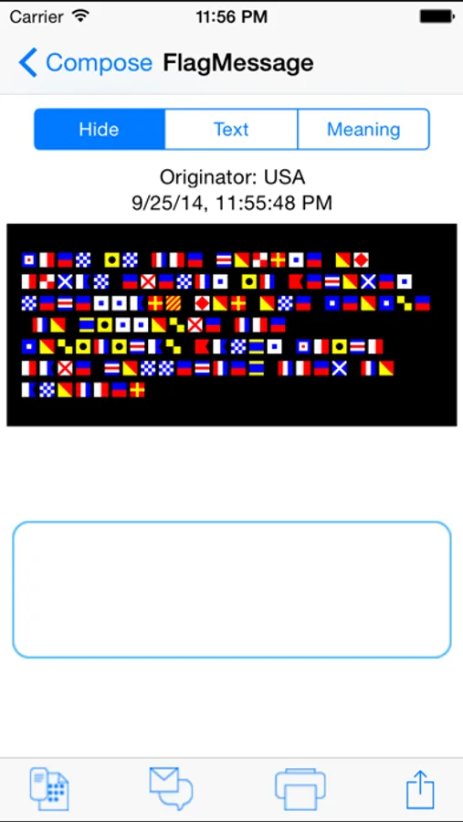 • composing, printing, and sending of flag images and message content via email, text and AirDrop