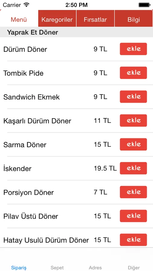 Bir Buçuk Döner Siparis Getir Uygulamasi Screenshots