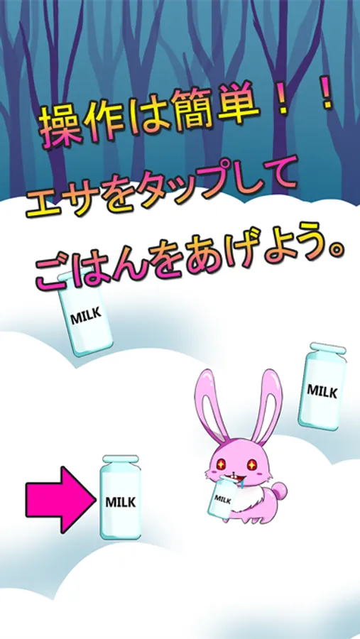 成長と共に餌を与えると、ストーリーが進んでうさぎがどんどん変化して行く育成ゲームの要素と、ストーリーに隠された驚愕の秘密をステージが進行する毎に発行される「新聞」を確認することで解き明かしていく、新感覚育成げーむアプリです。