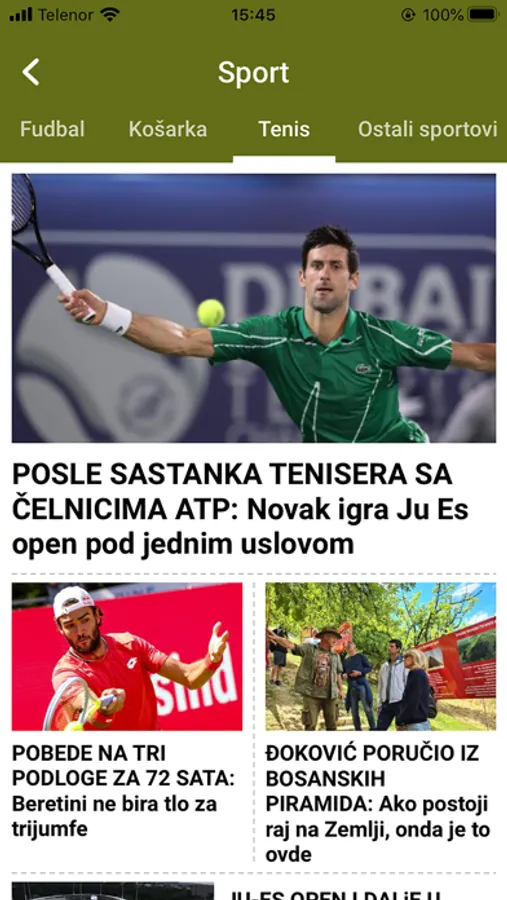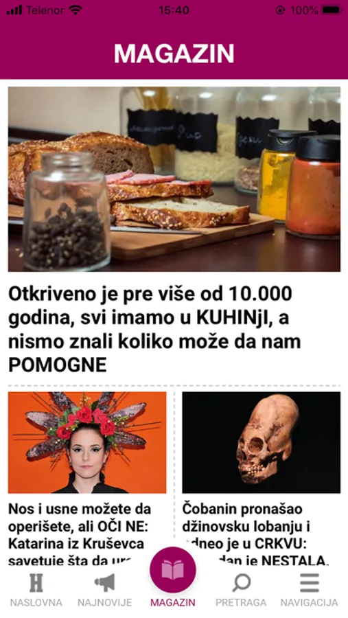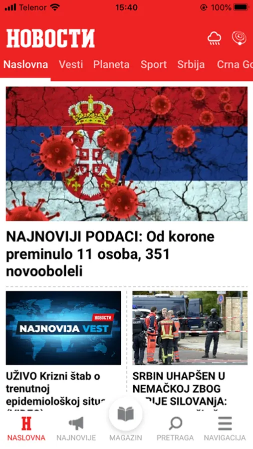 Aplikacija "Večernjih novosti", najtiražnijeg dnevnog lista u Srbiji.