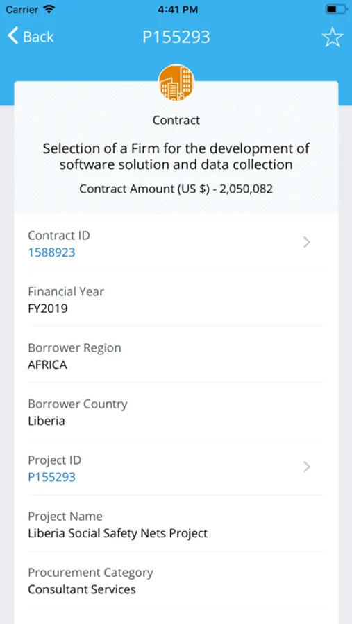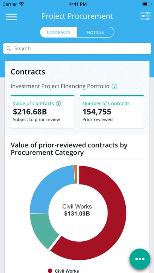 As part of the World Bank’s commitment to transparency and accountability as central pillars of the development process, this applications provides stakeholders with easy and open access to procurement data. The dataset on this application provides information on prior reviewed contracts since 2000 and post review contracts since 2016 awarded in World Bank investment project financing. The App allows users to analyze the data through various visualized queries. The app also provides information on procurement opportunities under these projects.