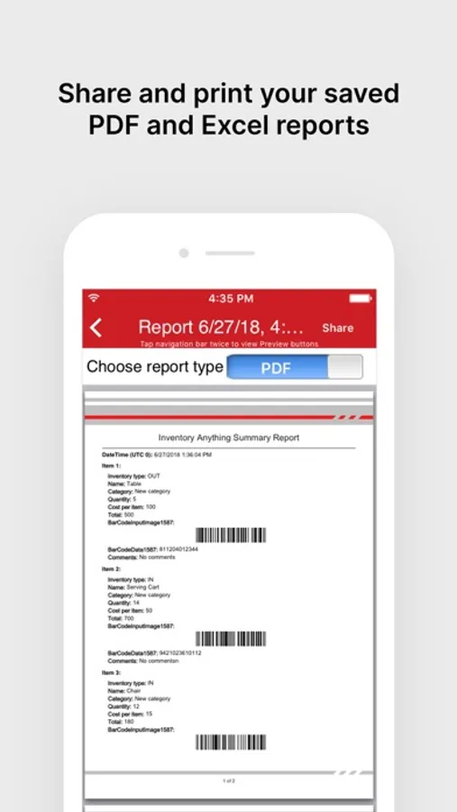 - generate and share custom PDF reports with all items listed