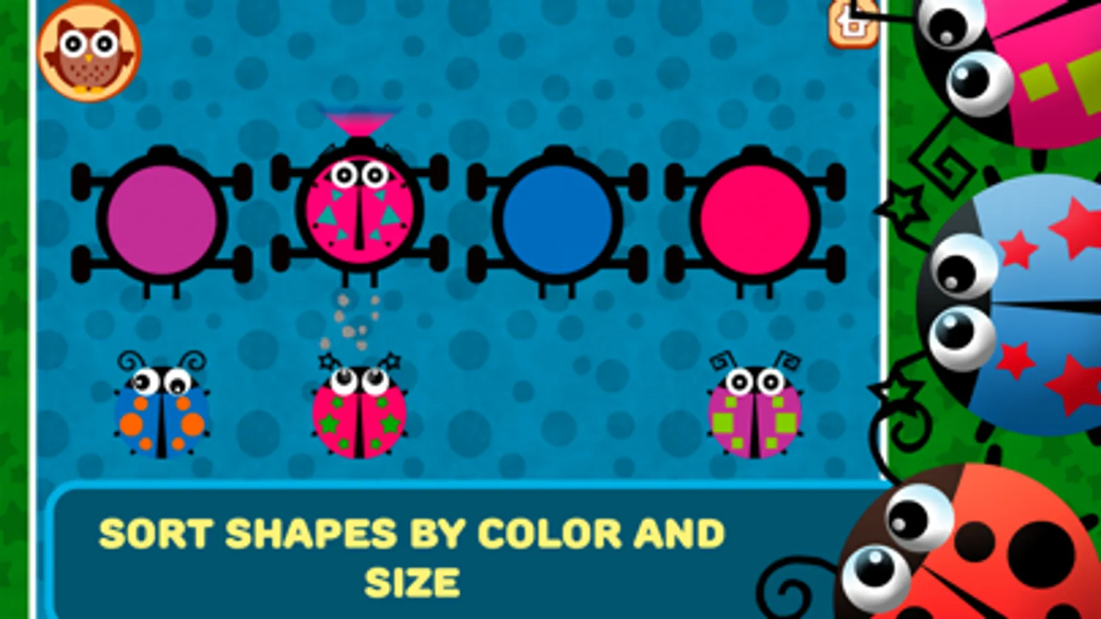 BabyUp: Beetles - set of early development games for your kids. Merry Beetles of different colors will help your child to learn colors, shapes and numbers. 15 mini games for children under age 6.