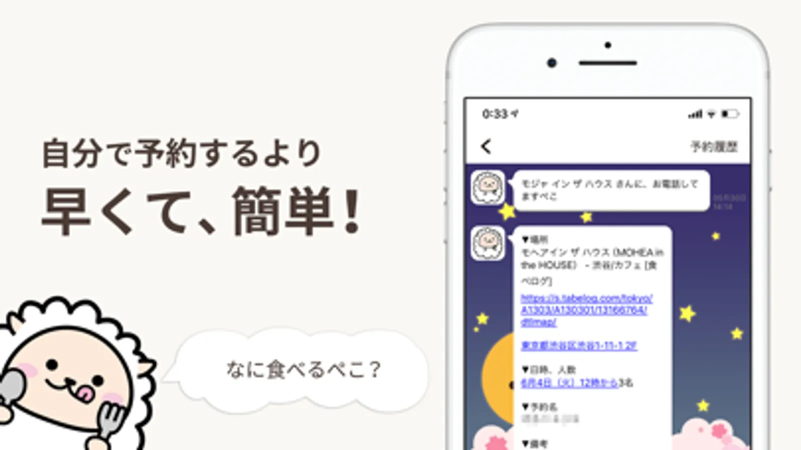 ■チャットで簡単に、日本全国の飲食店の予約を代行してもらえるサービスぺこ