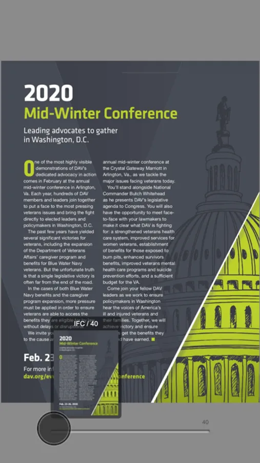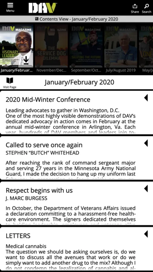 Download the DAV Digital Magazine app to stay up to date on important issues and government policies affecting veterans and their families. You will see how DAV works to empower veterans to lead high-quality lives with dignity and respect. You’ll also find out how DAV’s state-level Departments and local Chapters nationwide are making a difference in the lives of the men and women who served our nation throughout the long and often difficult process of healing and rehabilitation. Be inspired by real-life stories of veterans who want to help others create success stories in their own communities.
