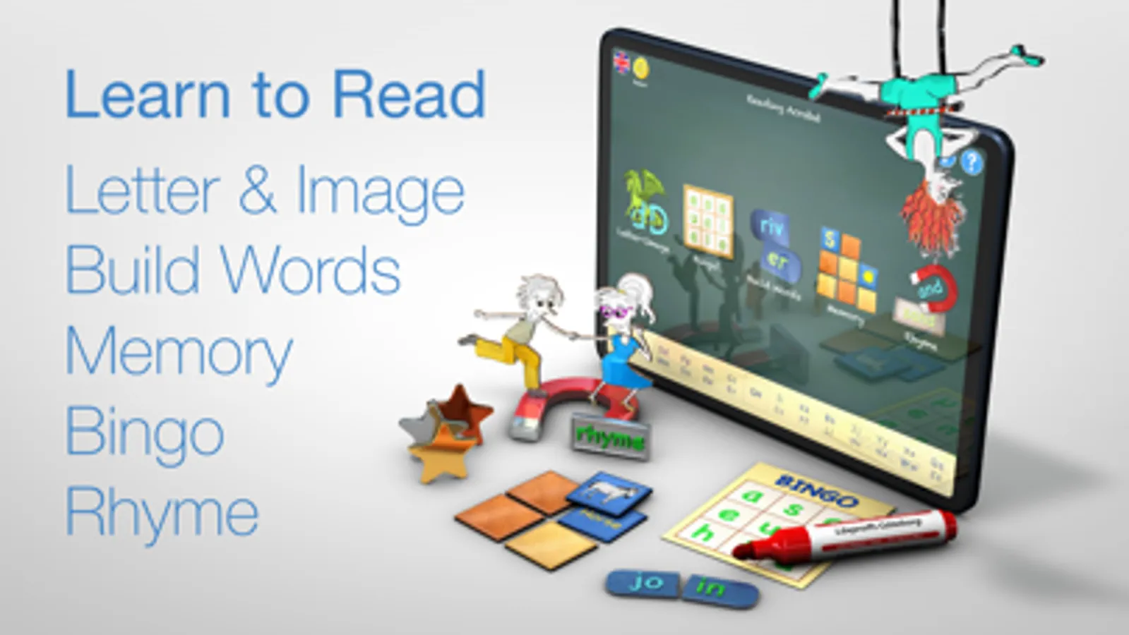 With Reading Acrobat you learn how to read in an educational and fun way. Fun exercises with great pictures and the words are pronounced when tapped on.