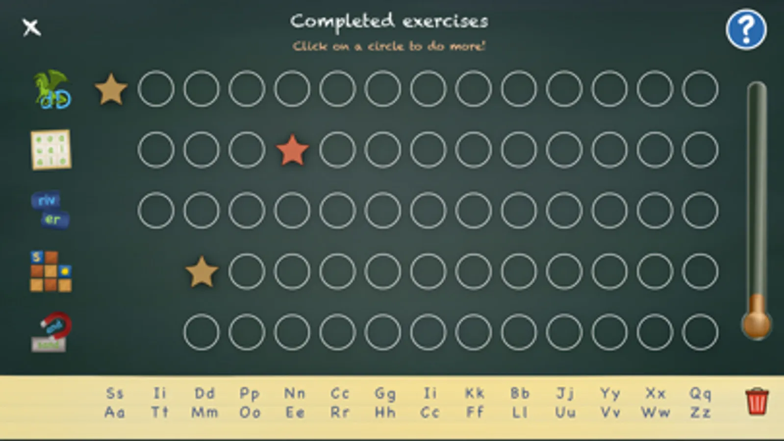 Each pair of letters is practiced through five different exercises.