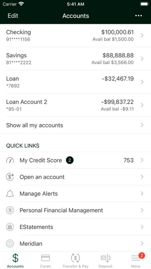 * Mobile Deposit: Take a picture of the front and back of an endorsed check to make a deposit avoiding trips to the branch or ATM.