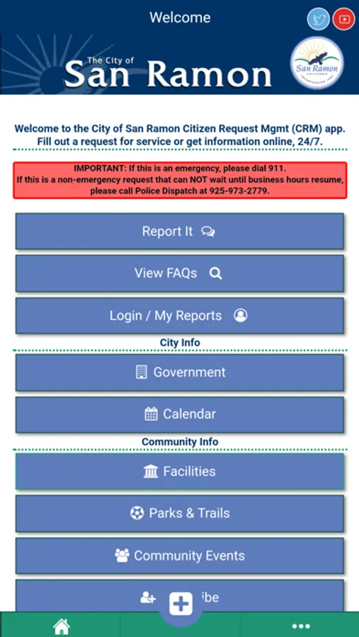 Ask questions. Find Answers. Request Services. The City of San Ramon App allows residents and business owners an avenue to get answers, report problems, and stay connected with the City of San Ramon.