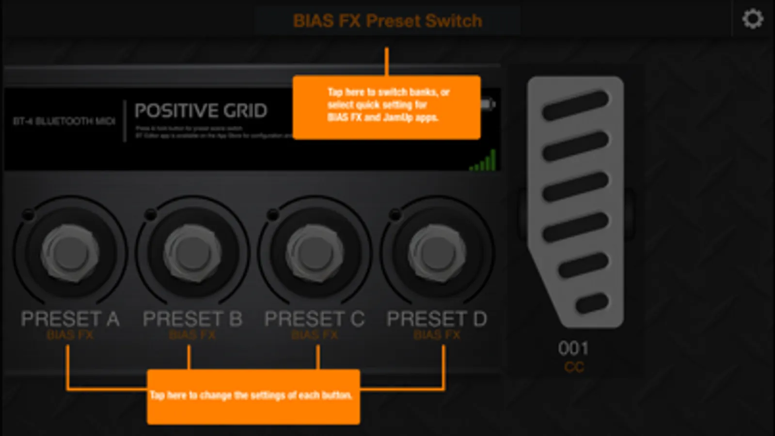 The BT Pedal Editor is an application for Positive Grid BT-4 and BT-2 Bluetooth MIDI Footswitch.