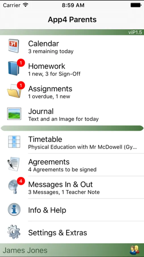 View appointment, homework and assignment tasks, view your child's timetable information, receive school notices and send parent notes all from within your convenient iPhone App. Sign-off on your child's homework at your convenience. All information is immediately up-to-date via the App4 Schools System web server running at the school. App4 Parents also provides you with access to all your children's App4 Student diaries even if they are at different schools.